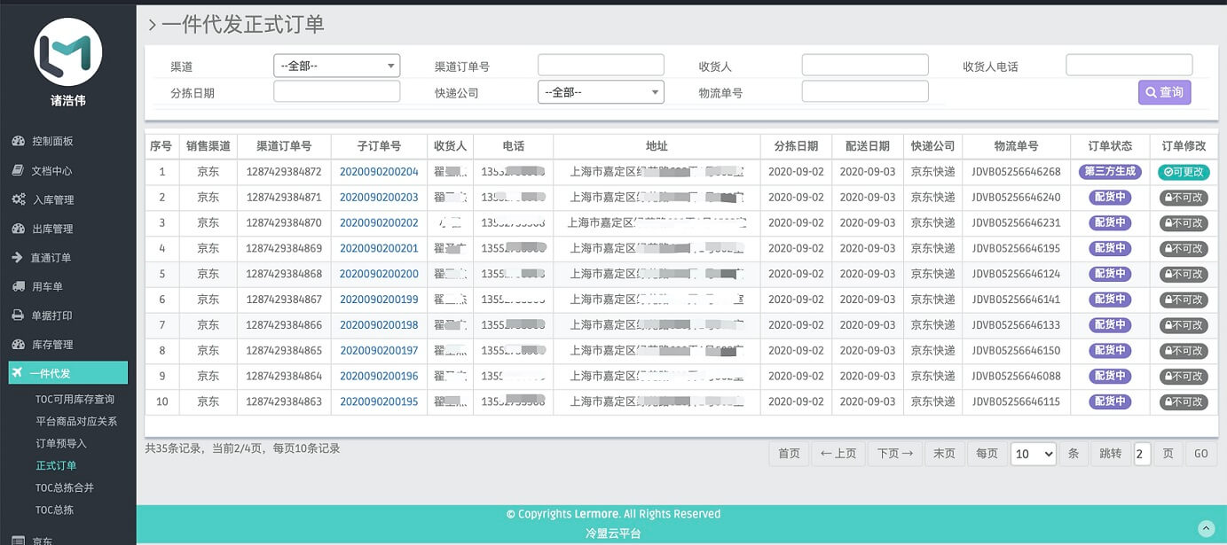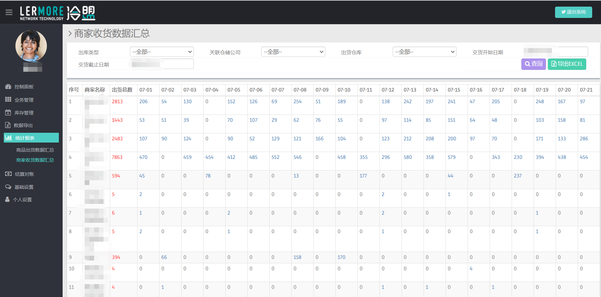 冷盟云平台商家工作台,含订单管理、库存查询、收货情况跟进、发货情况跟进、自动对账、数据预测、数据统计、汇总。