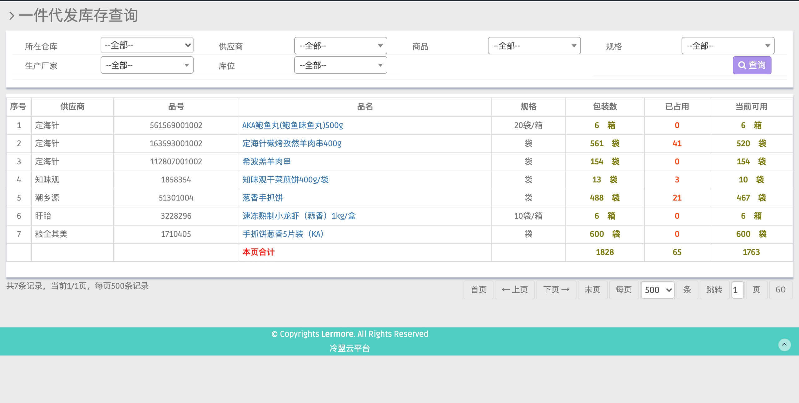 冷盟云平台仓库系统,包含库存查询、盘点、移库、不良登记、库存预警、多仓业务、自动化立体库等功能模块。通过冷盟云仓储系统,可以连通供应链上下游信息,对于原材料的采购、物流公司的预约能够及时进行有效的沟通,保证信息的通畅。同时,WMS对于企业扩大之后建设集团统一仓储信息平台有重要意义。