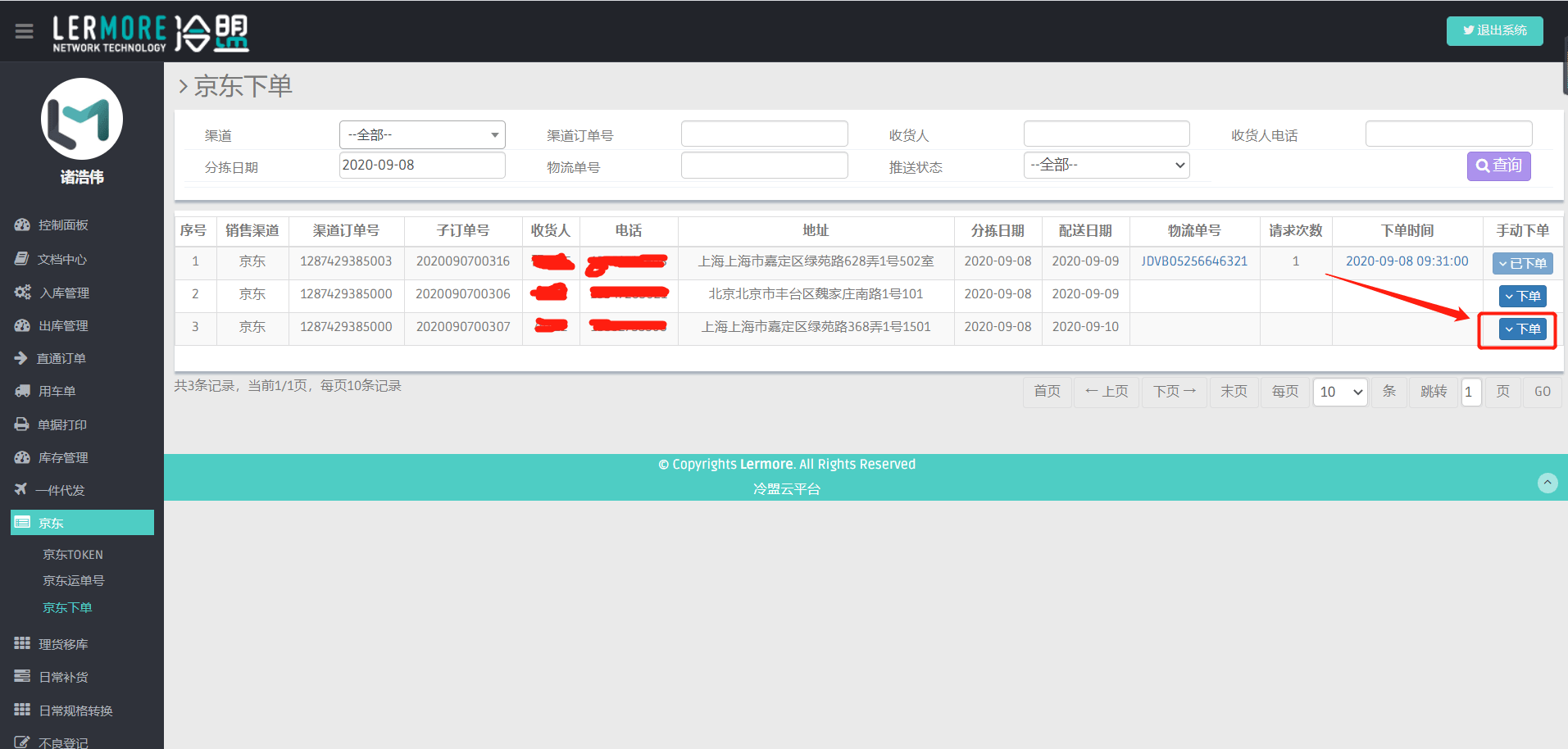 3.选择快递平台后(左边导航)后,点击订单后面【下单】按钮